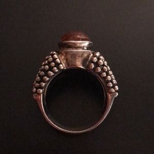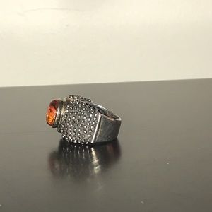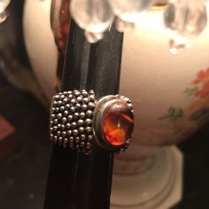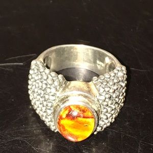 Gorgeous Silpada amber ring. A beautiful piece of amber in a spectacular setting, oxidized under set beads (quite the workmanship!) Mint condition. (Tray/Slot 72)
