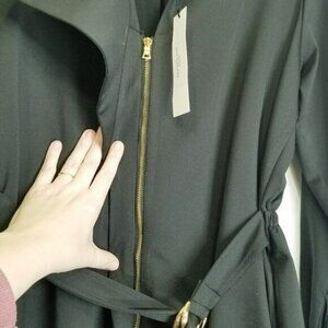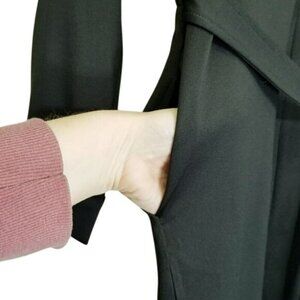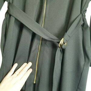 Ambernoon Womens L Zoah Black Belted Long Sleeve Zipper Coat Dress Pockets UPF