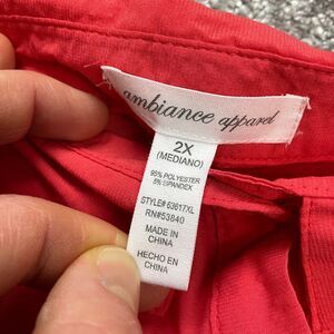 Ambiance Apparel Blouse Button Up Shirt Womens 2X Red Solid Long Sleeve Top