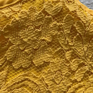 Yellow lace crop top with adjustable straps, lined, size medium, no visible flaws