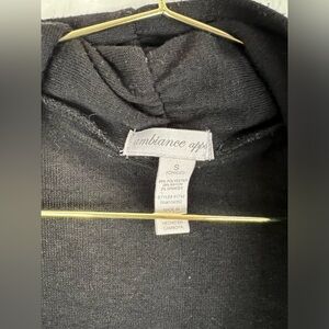 This Ambiance Apparel cardigan in size Small is a versatile wardrobe staple. Featuring a classic black color and open-front design, it's perfect for layering over casual or dressy outfits. Made with a lightweight knit fabric, it offers comfort and style for year-round wear. The long sleeves and soft material make it ideal for adding a touch of sophistication to your look.