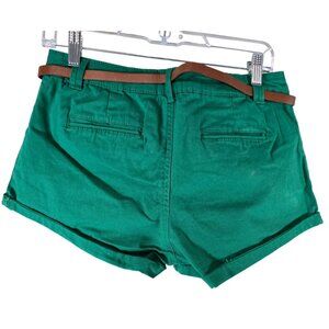 Ambiance Apparel Women's Size M Green Denim Shorts with Belt