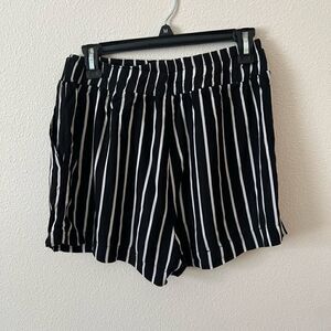 Ambiance Apparel women’s high waisted black/white striped shorts with pockets L
