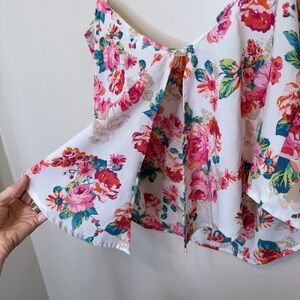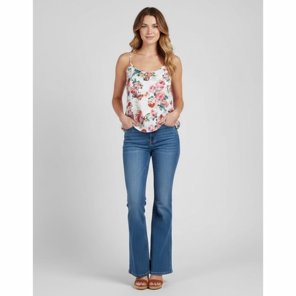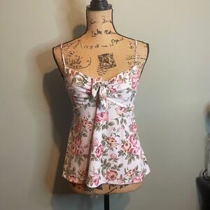 Ambiance Apparel Floral Spaghetti Strap Split Back Open Flutter Backside Rear Button Closure Soft Girl Bohemian Festival Boho Chic Coastal Cowgirl Flirty Romantic Feminine Coquette Cottagecore Spring Easter Shabby Chic Valentines Scandi Girl Euro Summer Baddie 2016 Aesthetic 2016core Y2K Lightweight Cami Tank Top Light Airy Popover Camisole