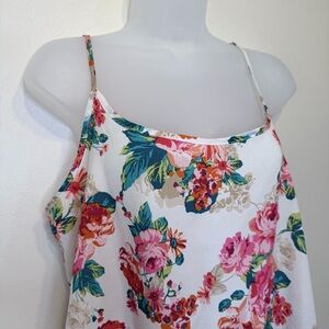 Versatile beautiful floral tank top by Ambiance. Features a vibrant multi-color floral pattern on a white background. Perfect for casual wear, office attire under a blazer or nighttime lingerie.