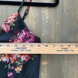 Ambiance, maxi romper, romper dress, floral romper, black floral romper, women’s size L, spaghetti strap romper, v-neck romper, overlay maxi romper, shorts romper dress, crisscross front romper, boho chic romper, fall wedding guest outfit, vacation romper, festival romper, garden party romper, date night romper, whimsigoth romper, witchy floral romper, romantic goth romper, dark floral festival outfit