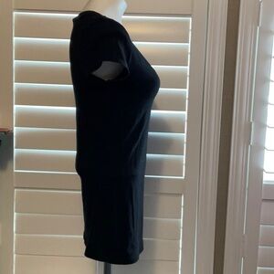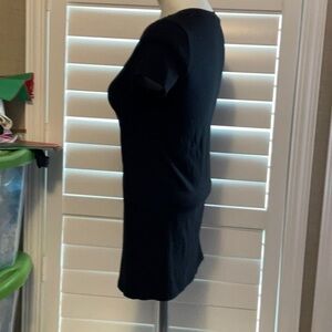 Sleek black V-neck tee. Short sleeves for casual style. Essential wardrobe piece.