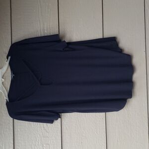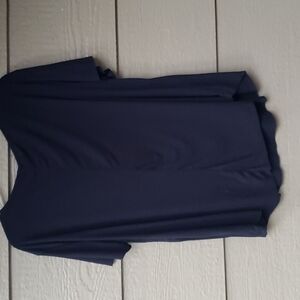 Flowy, fits 1x-2x 18/20. very stretchy. Only worn a couple times. I wear a 2x in stretchy Torrid tops and this fits perfectly. shirttail hem.