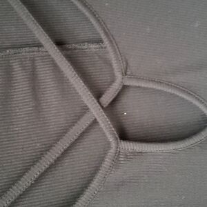 Ambiance Crisscross ribbed Black short sleeve flowy top 1x