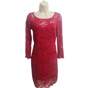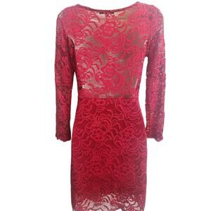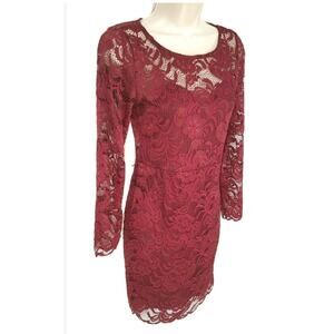 Ambiance Dark Red Lace Sheath Mini Fit & Flare Dress Crew Neck Women Size M