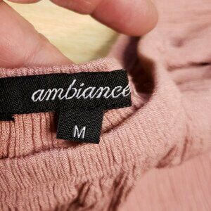 Ambiance women’s dusty rose off the shoulder lacey sleeve crop blouse Medium. Good condition. Measurements are: 17” from seam, 13” from shoulder to shortest part of hem, and aprox. 19 ½” from armpit to armpit.