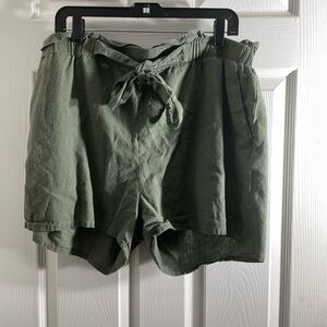 Ambiance High Waist Green Shorts with Tie-Waist