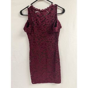 Ambiance Juniors Girls Lace Bodycon Dress Burgundy Cold Shoulder Size Small