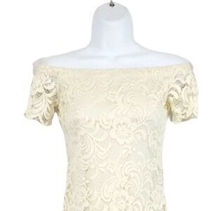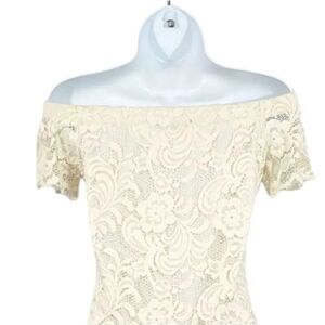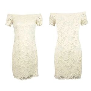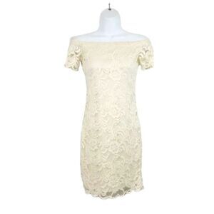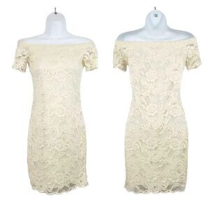 Ambiance Lace Bardot Off the Shoulder Mini Dress in Ivory Size Small
