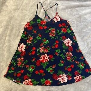 Ambiance Navy Floral Print Spaghetti Racerback Strap Babydoll Flowy Trapeze Dress Size Medium