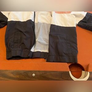 Stylish white pink and black Windbreaker Jacket with two pockets. Size small and barely used