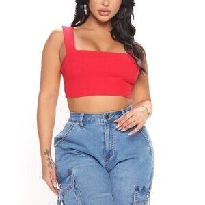 Ambiance Red Cotton Blend Square Neck Wide Straps Crop Tank Size S RefFNB