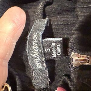 Ambiance ribbed mini dress in size small. Features a quarter zipper and sleeveless design. Made of 68% polyester, 27% rayon, and 5% spandex. Hand wash recommended. P154 60