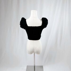 Ambiance Smocked Puff Sleeve Crop Top S Black Y2K Square Neckline Button-Front