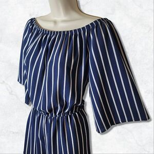 Ambiance Striped Off-The-Shoulder Short Sleeve Romper;