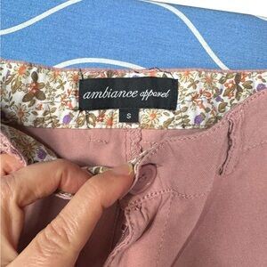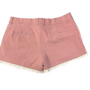 Ambiance apparel. High Waist Pink and Cream Lace Trim Shorts
