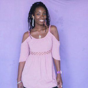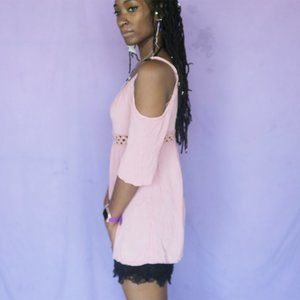 Ambiance cold shoulder crochet waist boho blouse in Pink size small.