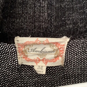 Ambiance brand, size M. In excellent, gently used condition. Long enough to cover butt. Open sweater with no buttons. Front pockets, ribbed detailing on sleeves, pockets, and front of sweater. Very nice and warm sweater! Pet free and smoke free home.