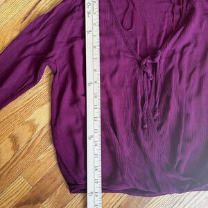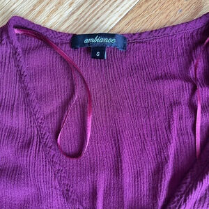 Ambiance long sleeve top, size small. Burgundy color, with flared sleeve. In good used condition, no rips tears or stains.