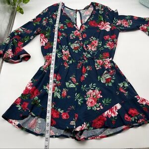 Ambiance Navy Red Floral Ruffle Romper MEDIUM