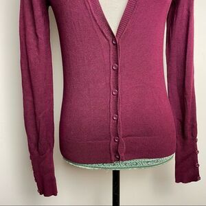 Ambiance Solid Maroon Burgundy V Neck Button Down Sweater Long Sleeve size M
