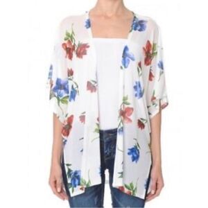 Ambiance Tops New Sheer Floral White Kimono Cover Up Size XL