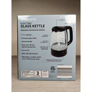 Ambiano Electric Glass Kettle 1.7L Capacity Premium Glass Body Blue LED Black