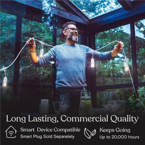 Ambience Pro Waterproof LED Outdoor String Lights, 48 Ft, Hanging, Dimmable
