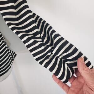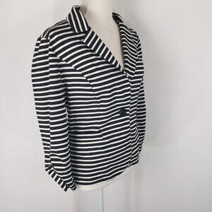 Ambition Notched Collared Single Button Ruched Sleeve Stretch Striped Blazer M