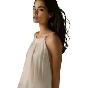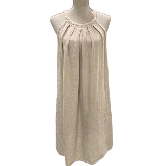 Ambra Italian Linen Dress Womans Size Medium Sleeveless Natural Gray