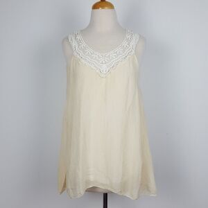 Ambra Made in Italy Top Beige 100% Silk Size Small Bohemian Romantic Lag…