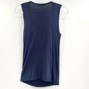 Ambre Babzoe Dark Blue Beaded Front Wool Blend Tank Top Women's Size 38 (US M)