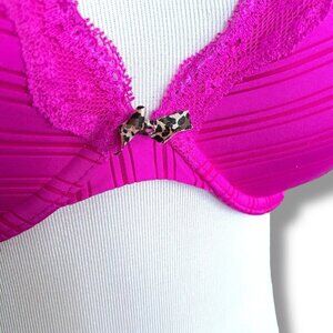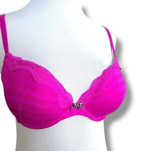 Ambrielle 34C Bra Raspberry Pink Sensual Stripe Plunge Push Up Padded Underwire