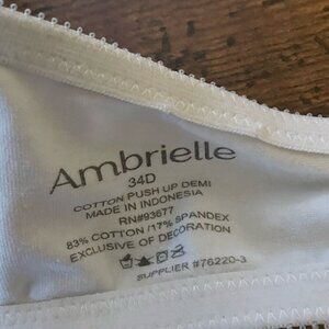 Ambrielle 34D Bra White Cotton Padded Push Up Demi Underwire T-shirt