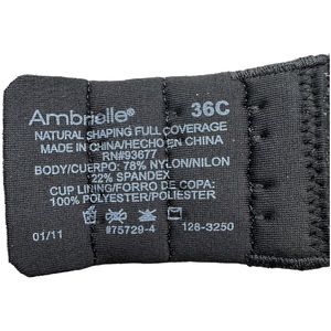 Ambrielle Natural Shaping Full Coverage Bra Underwire Black Size 36C