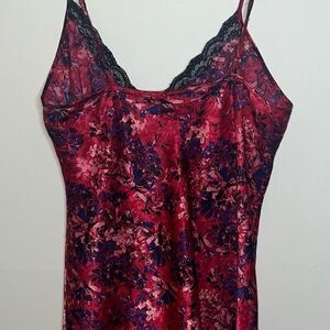 Ambrielle Satin Nightgown Slip Dress Red Pink Purple Floral