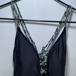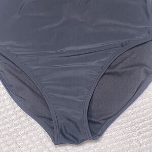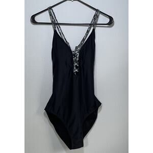 Ambrielle Size Large Black Plunge One Piece Swimsuit Tie Straps