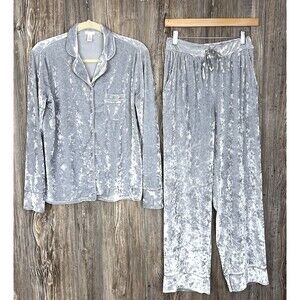 Ambrielle Sleepwear Small Grey Crushed Velvet Pajama Set Pants & Top Soft Cozy.