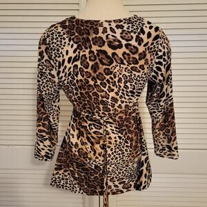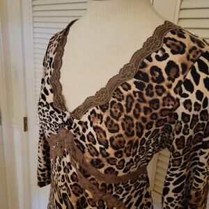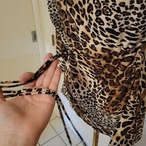 Ambrielle Small Y2K Leopard Print Lace Trim Deep V-Neck Tie Waist Top