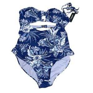 Ambrielle Swimsuit one piece swimwear navy white tropical size Large
