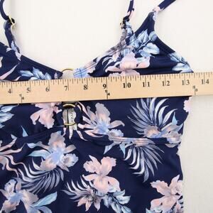 Ambrielle Tankini Top Navy Floral Tropical O Ring Cutout Padded Swim Top Small