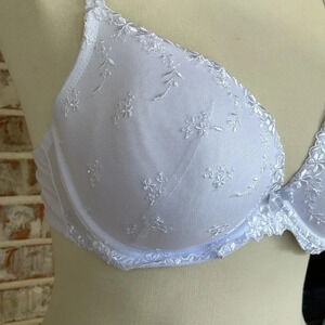 Ambrielle White Embroidered Underwire Split Strap Plus Size Bra