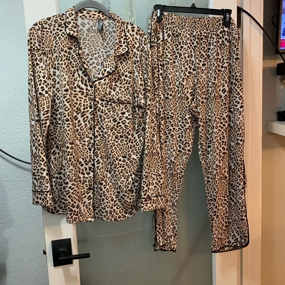 Ambrielle Women's 2 Piece Pant & Long Slv Shirt Pajama Set - Cheetah NWOT