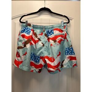 Ambsn Men’s Lace-Up Drawstring Eagle Print Swim Trunks Shorts Size XL Blue Red