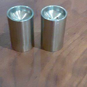 individual fancy "mini" salt & pepper shakers - 2 sets ( 4) pieces - stainless - New in package- great for chefs or home entertainment,